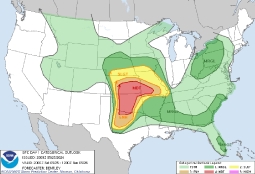 The biggest threat area is even tornado-shaped.